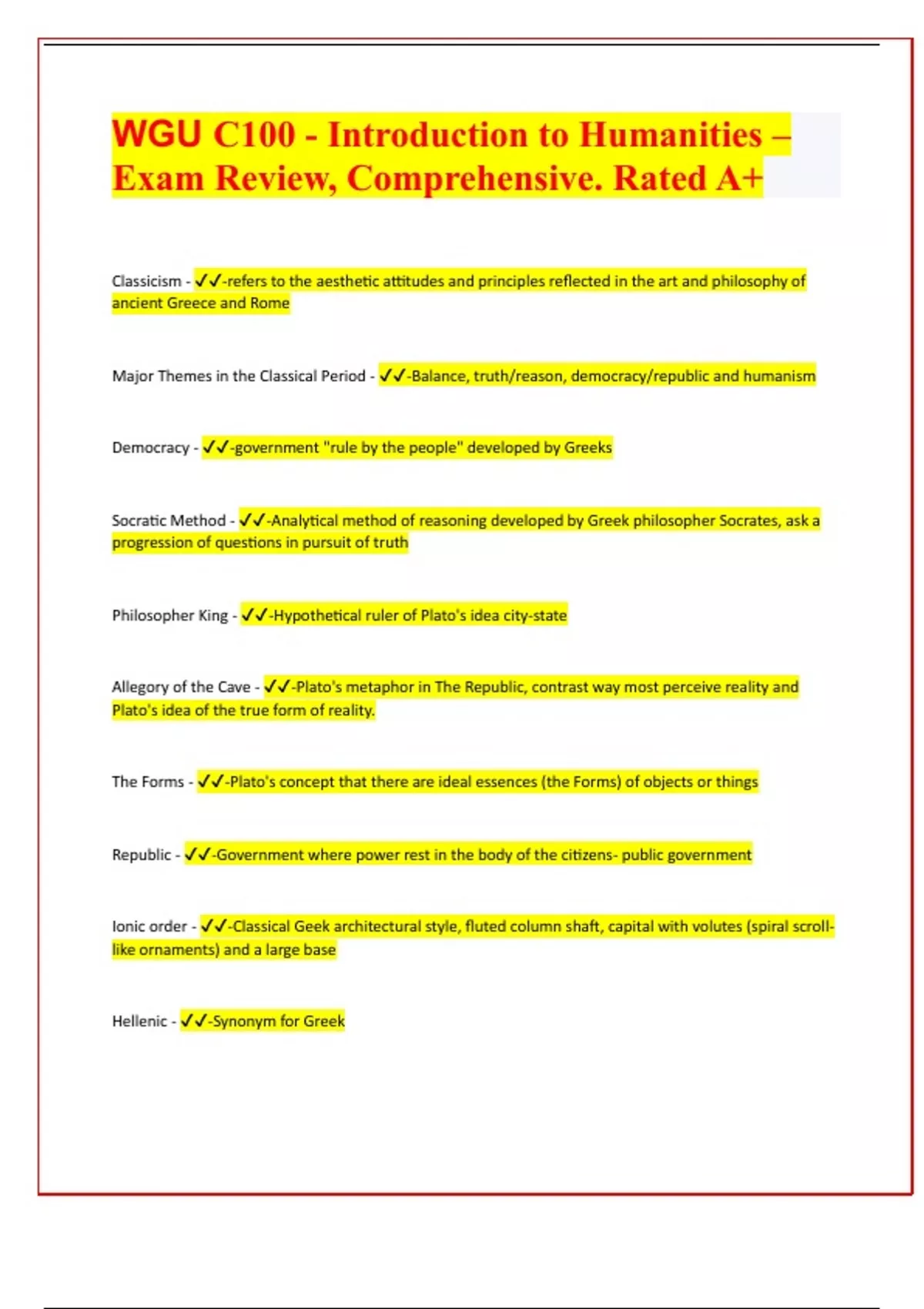 WGU C100 - Introduction to Humanities – Exam Review, Comprehensive. Rated A+ 2024