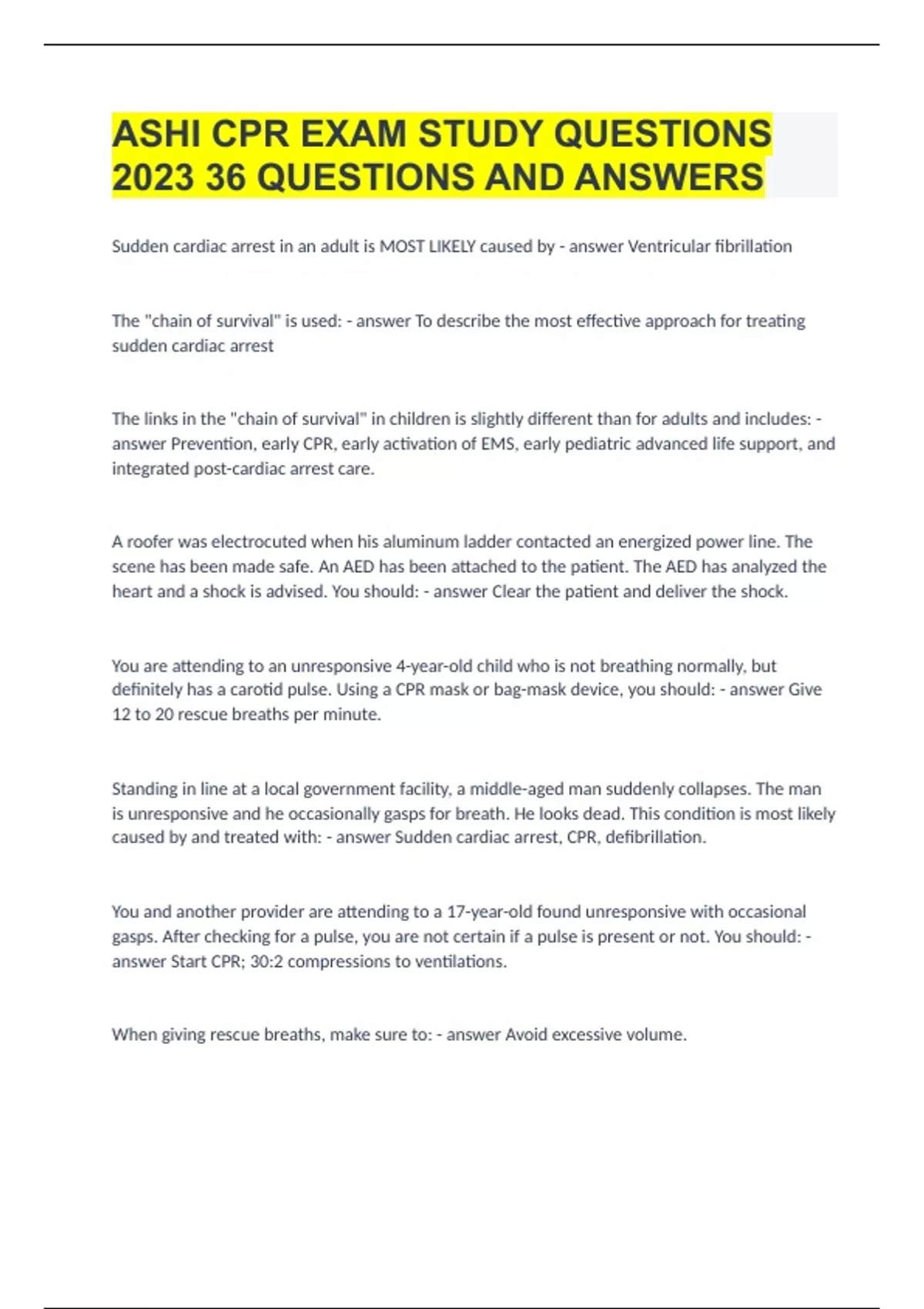 Sudden cardiac arrest in an adult is MOST LIKELY caused by - answer Ventricular fibrillation