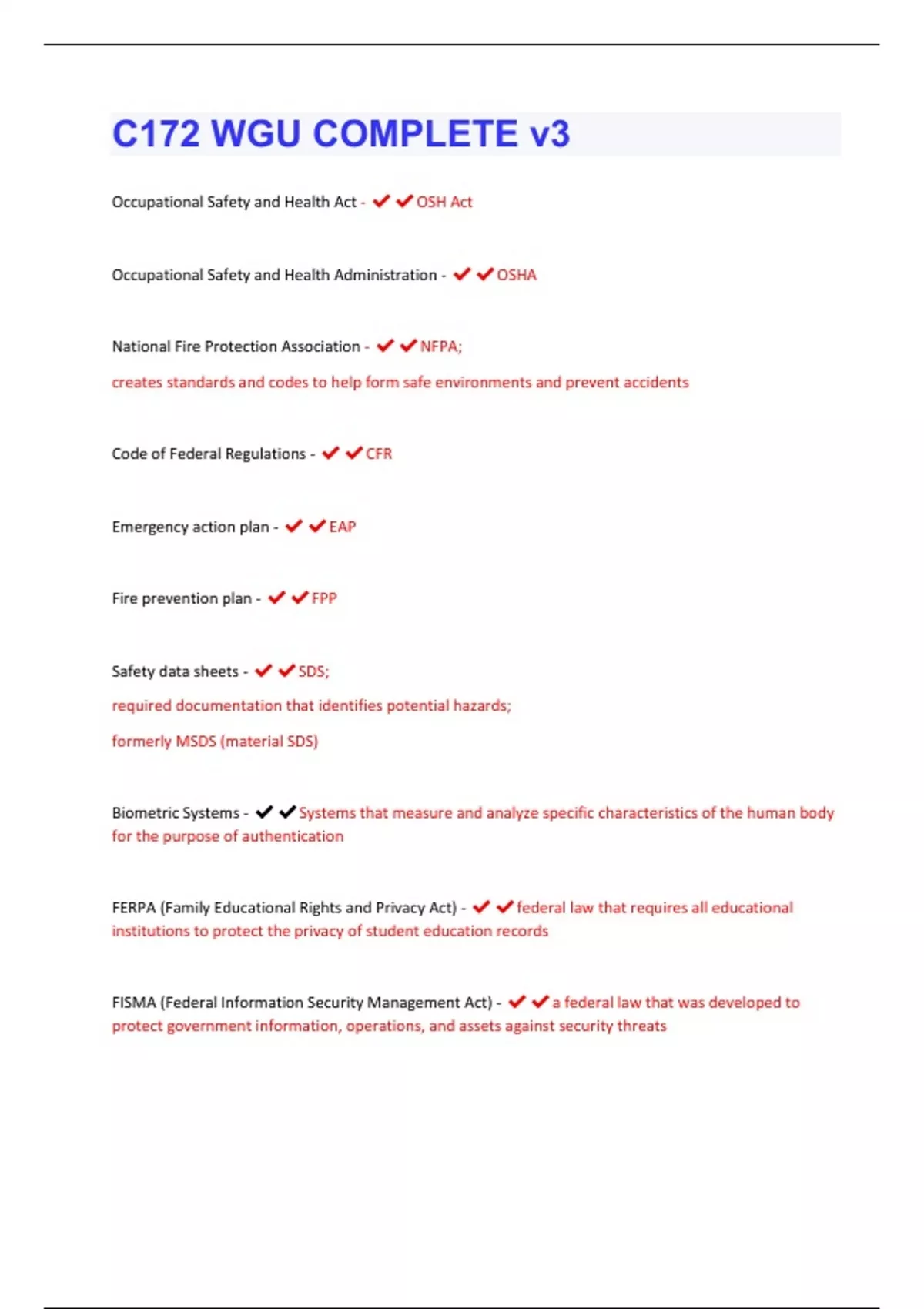 C172 WGU COMPLETE v3 Exam | 447 Questions And Answers Already Graded A+