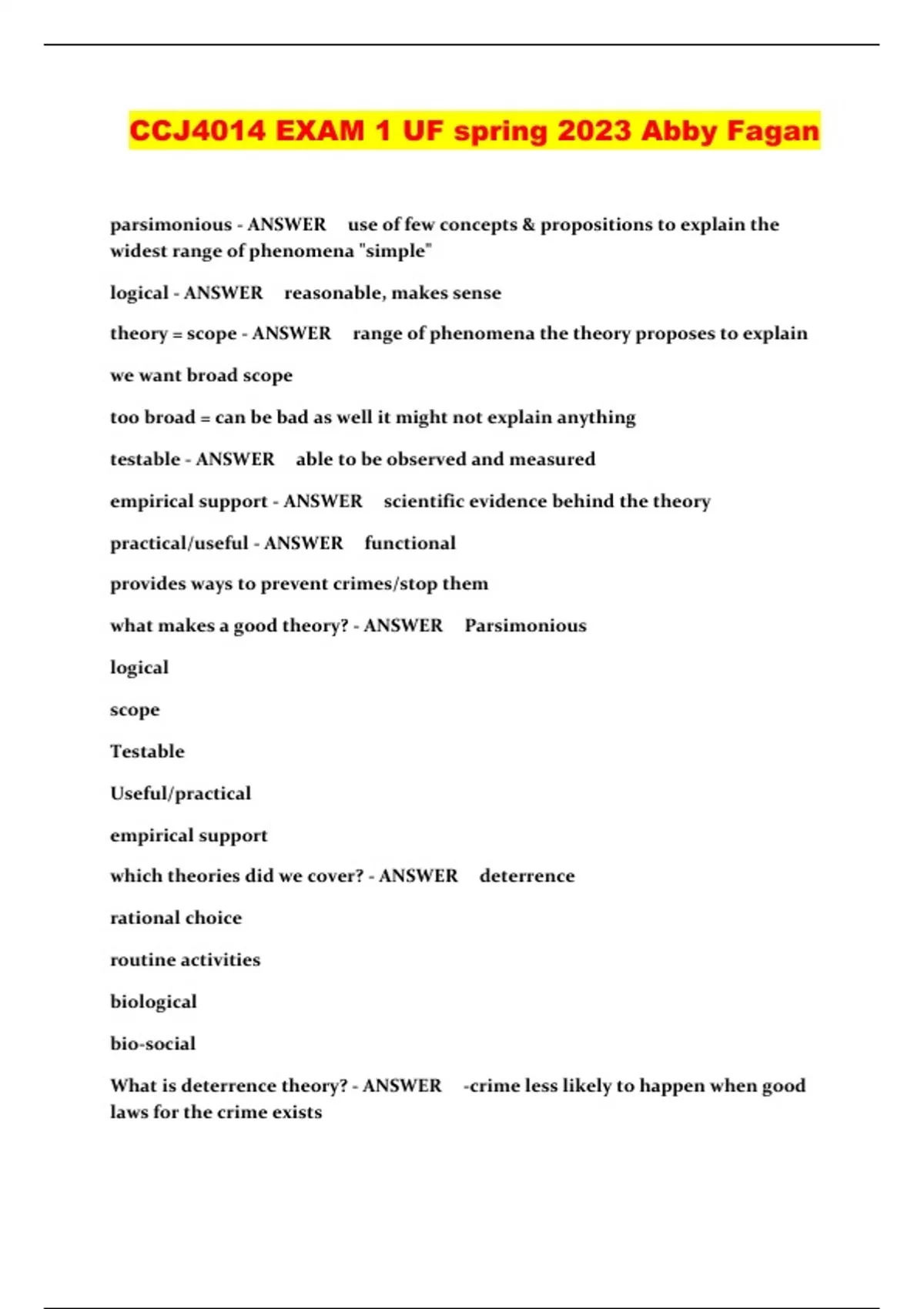 CCJ4014 EXAM 1 UF spring 2023 Abby Fagan