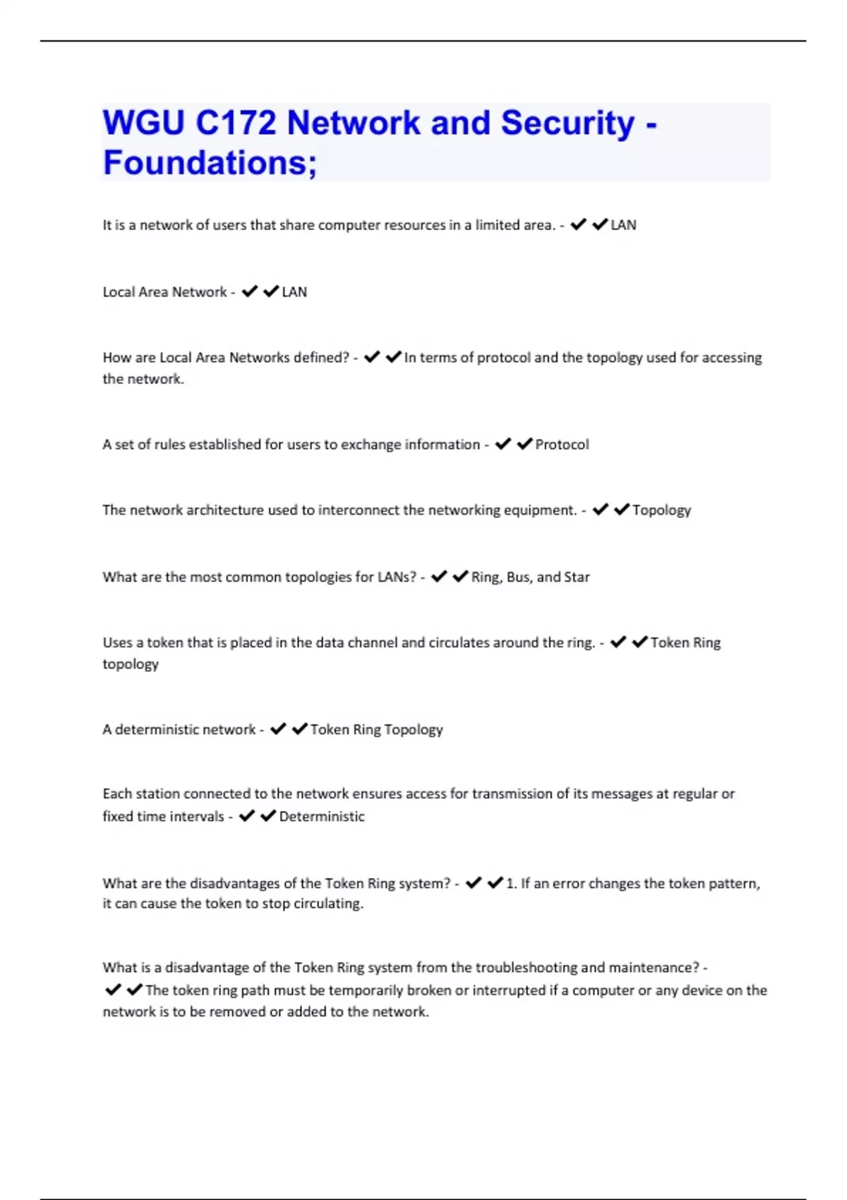 WGU C172 Network and Security - Foundations; Exam | 233 Questions And Answers Already Graded A+