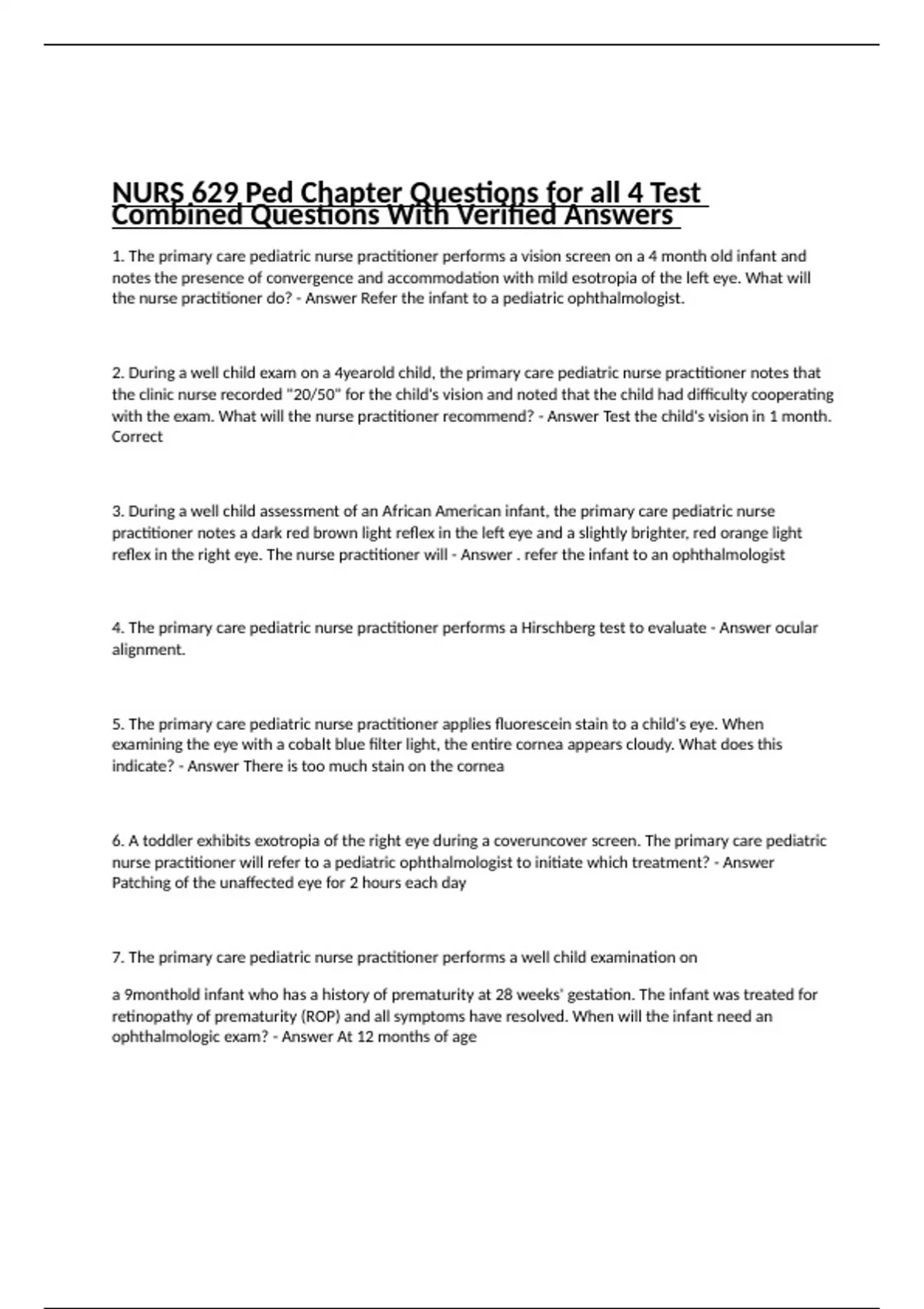 NURS 629 Ped Chapter Questions for all 4 Test Combined Questions With Verified Answers