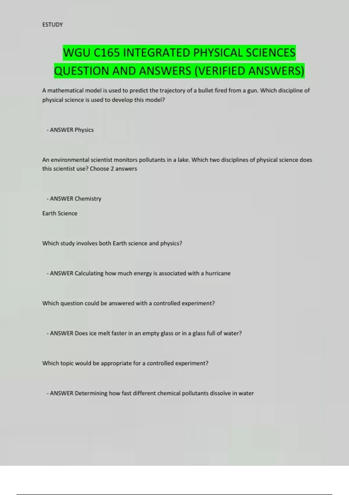 WGU C165 INTEGRATED PHYSICAL SCIENCES QUESTION AND ANSWERS (VERIFIED ANSWERS)