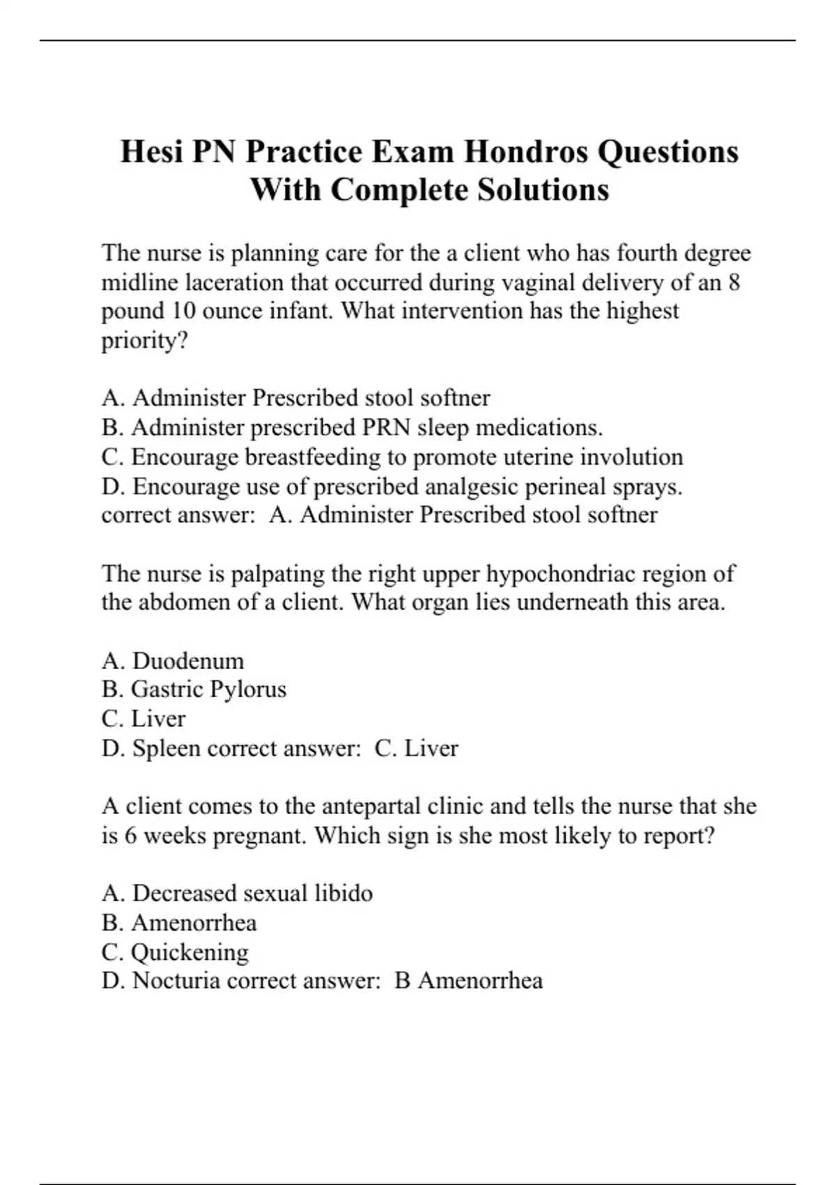 Hesi PN Practice Exam Hondros Questions With Complete Solutions