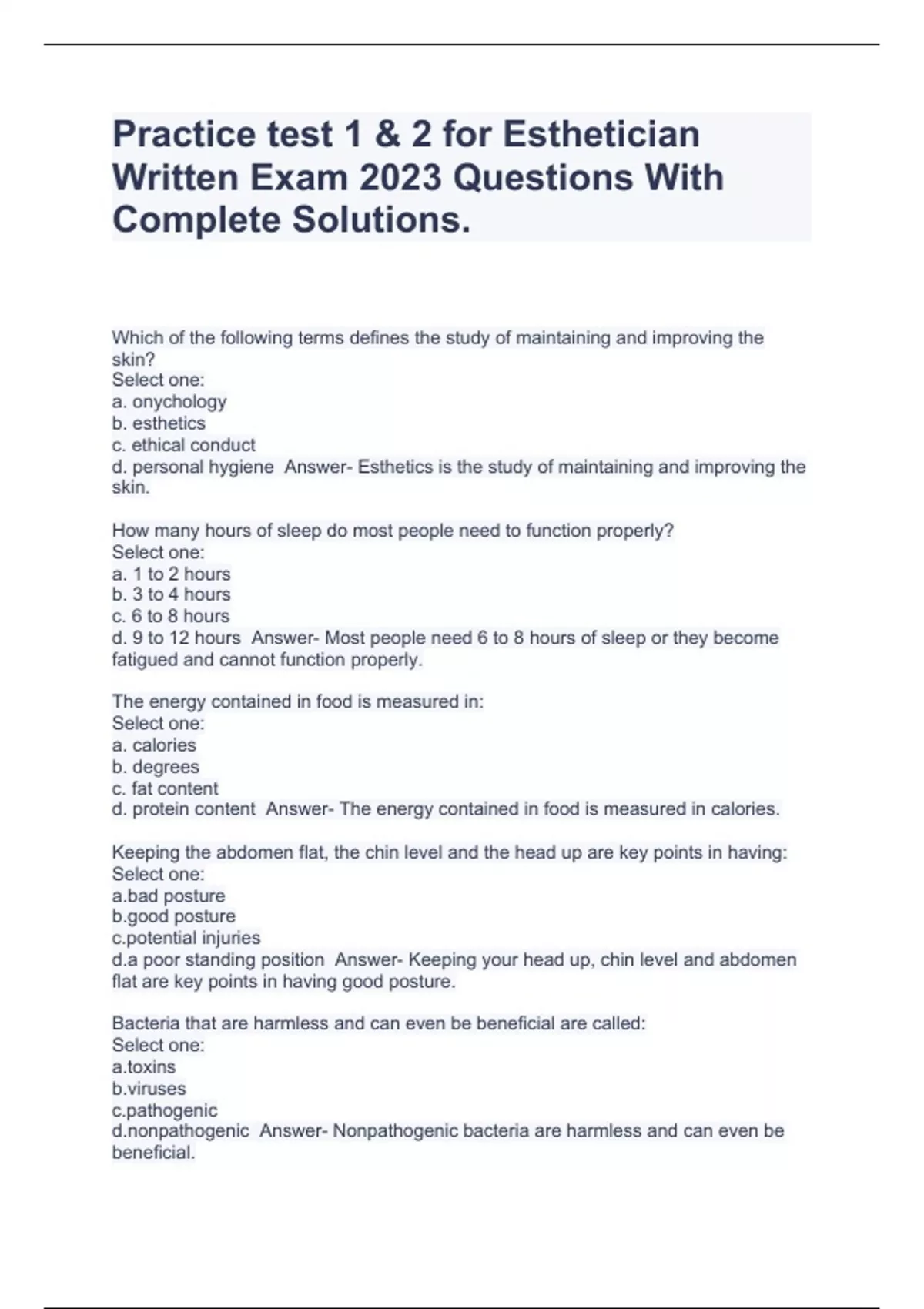 Practice test 1 & 2 for Esthetician Written Exam 2022