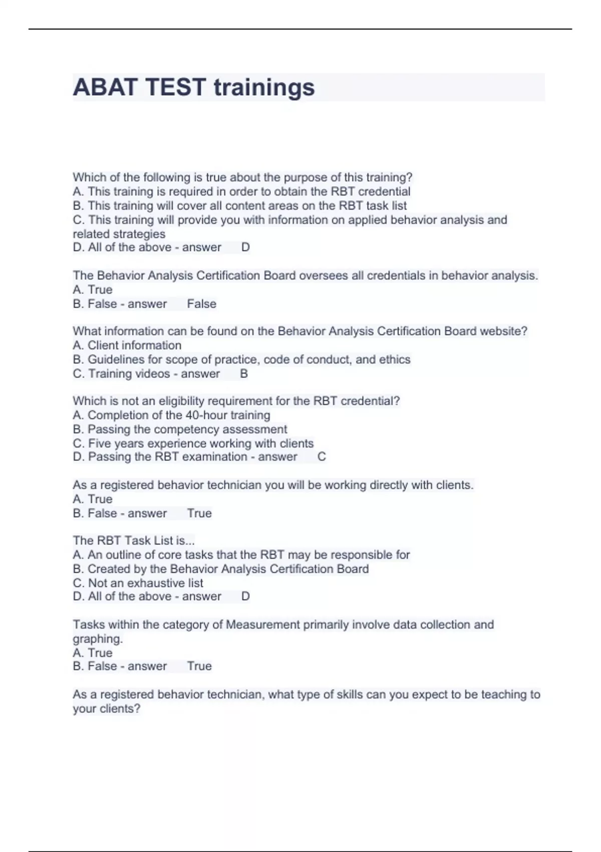 ABAT TEST trainings Questions with Accurate Answers 2023