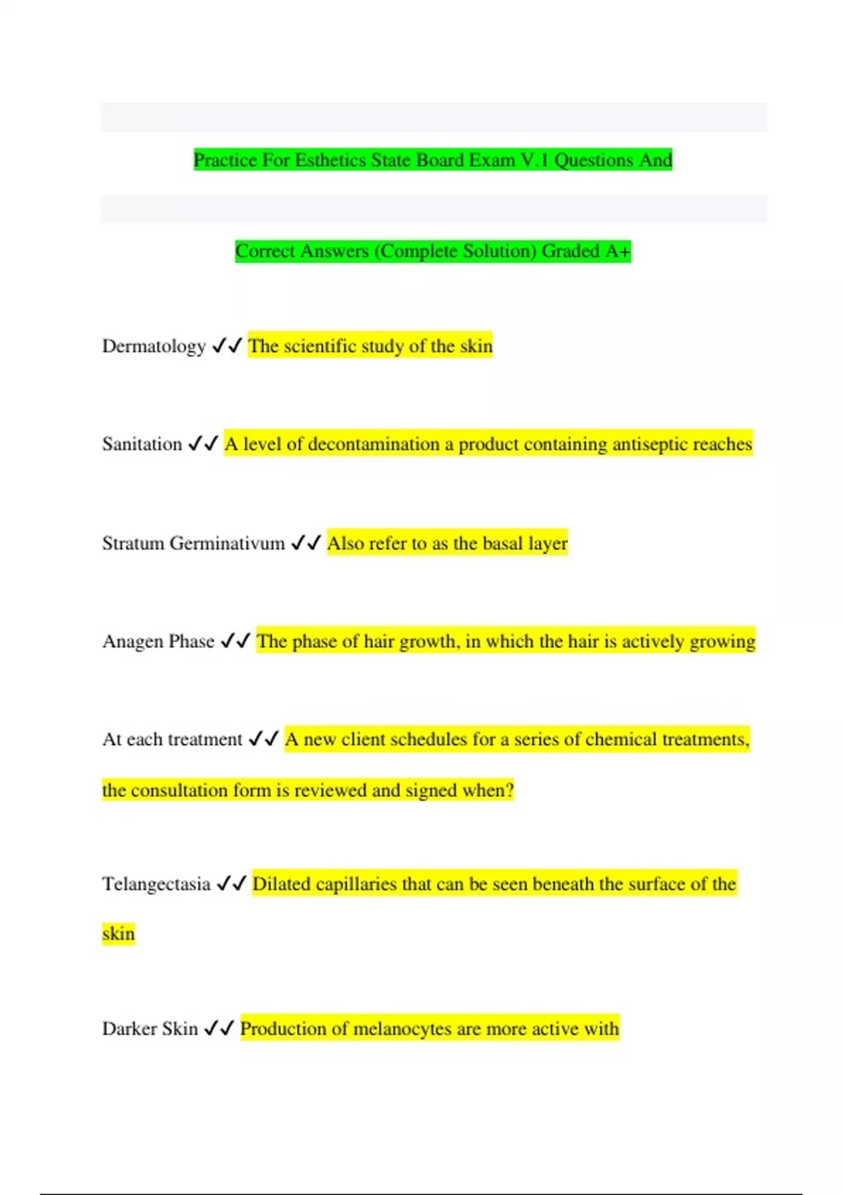 Practice For Esthetics State Board Exam V.1 Questions And Correct Answers |Complete Solution Graded A+