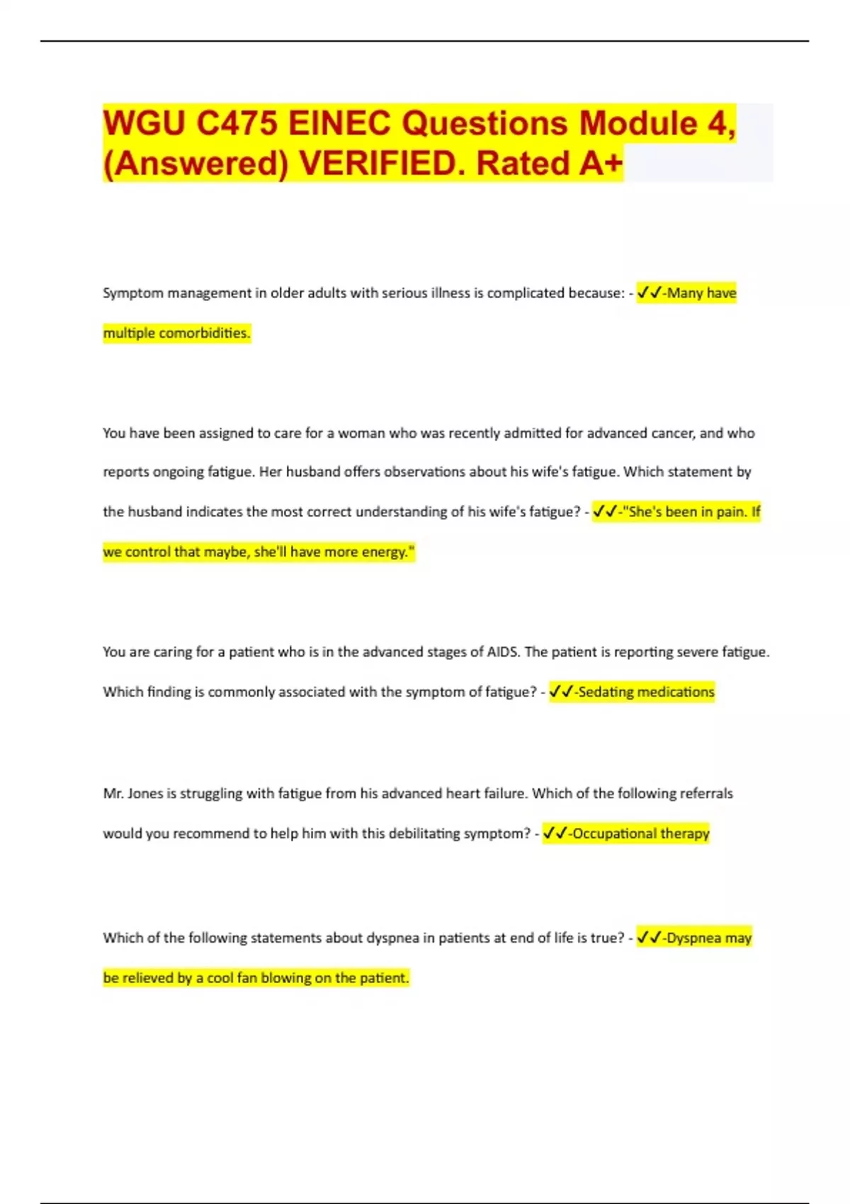 WGU C475 ElNEC Questions Module 4, (Answered) VERIFIED. Rated A+ 2024