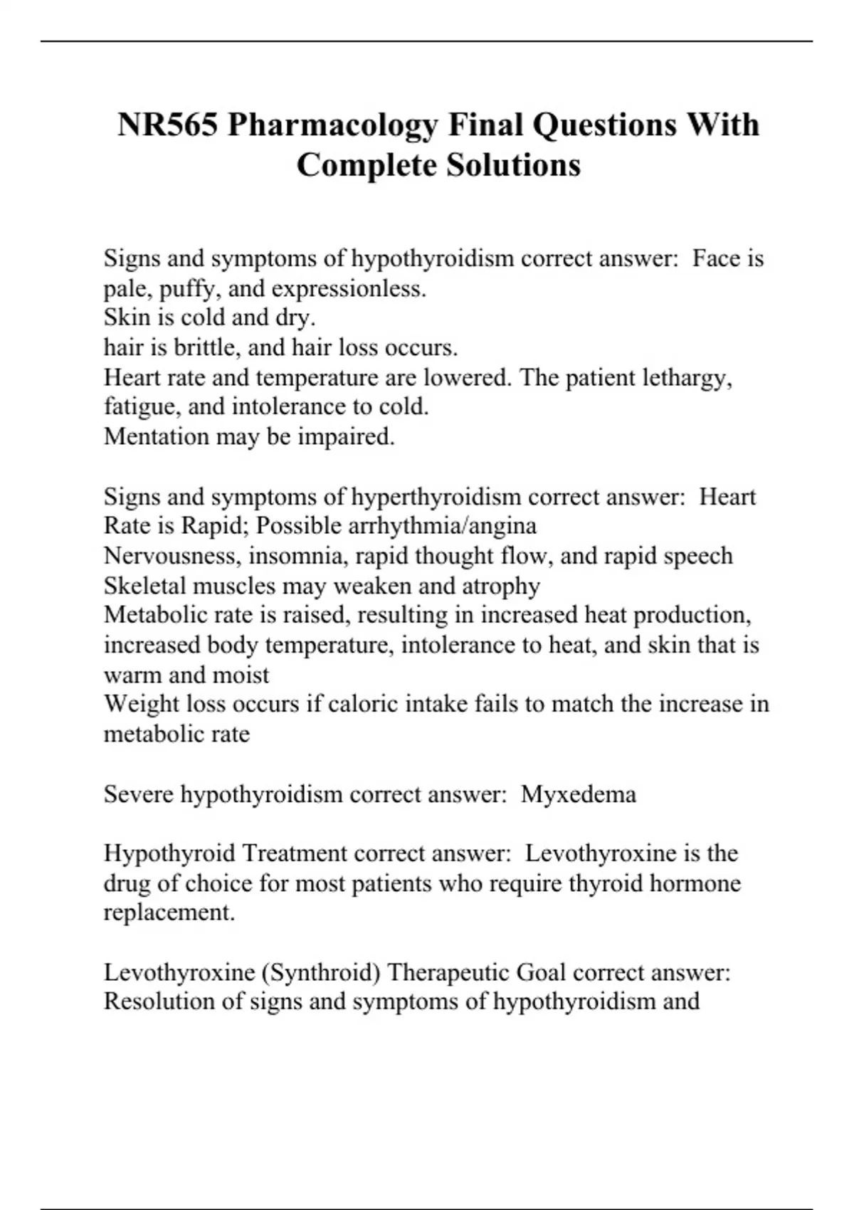 NR565 Pharmacology Final Questions With Complete Solutions