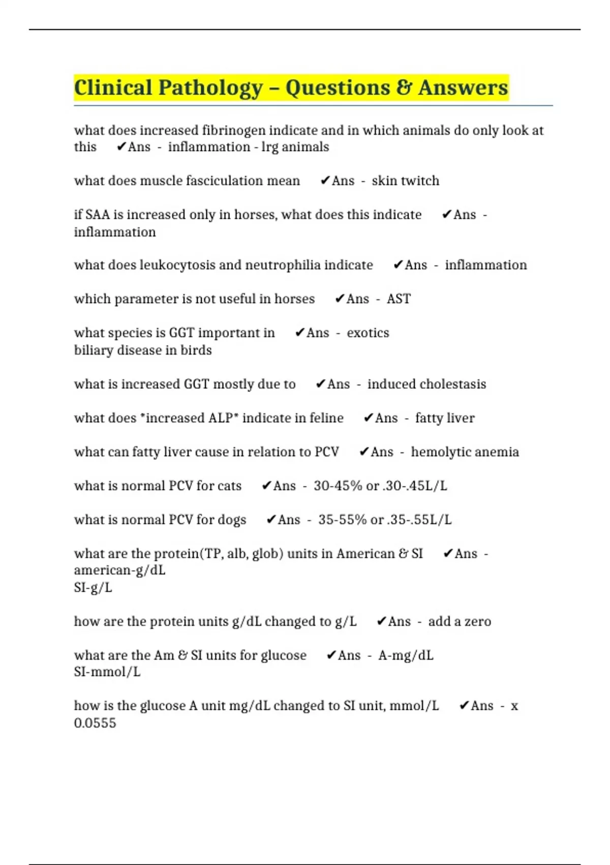 Clinical Pathology – Questions & Answers