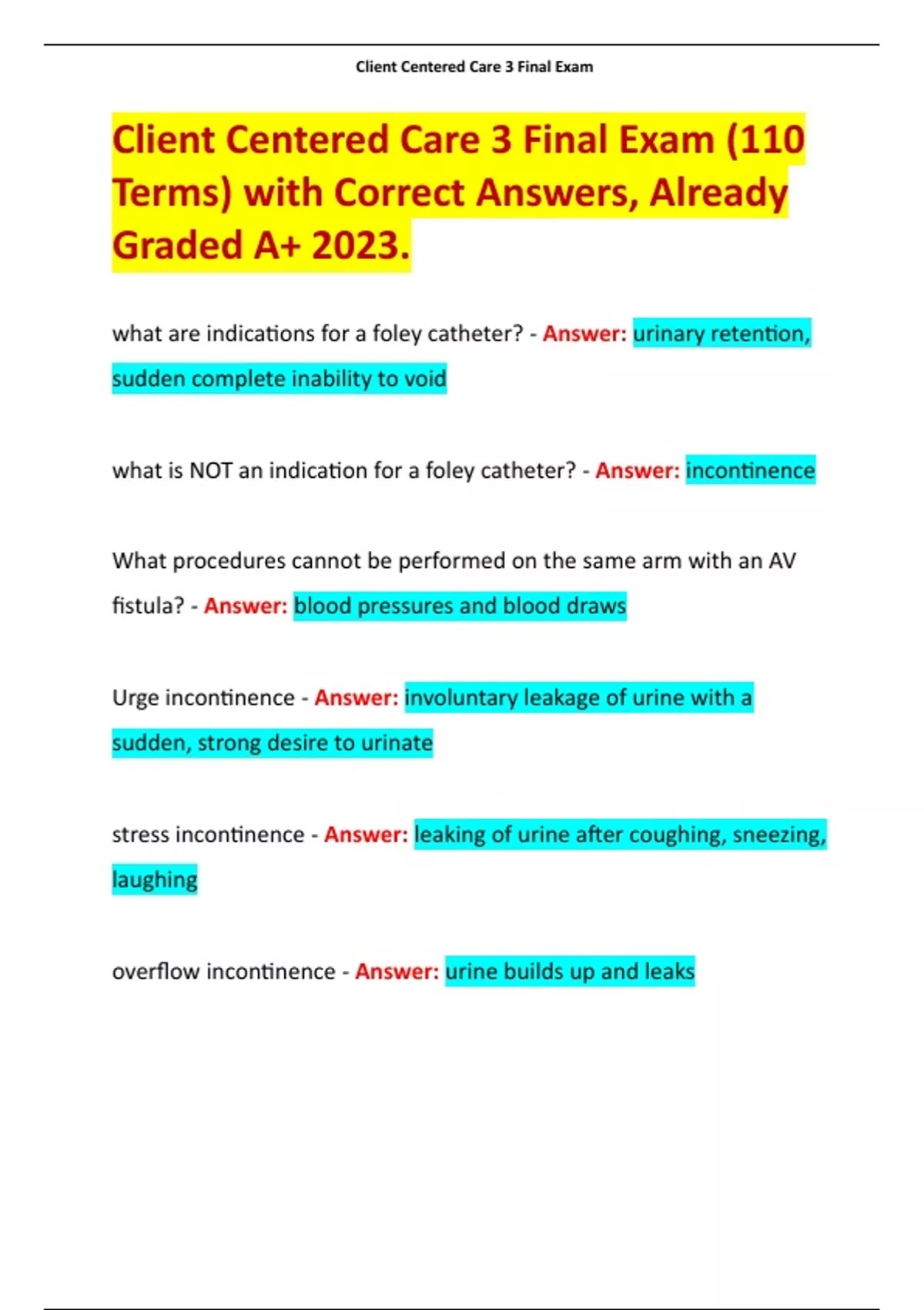 Client Centered Care 3 Final Exam (110 Terms) with Correct Answers, Already Graded A+ 2023.