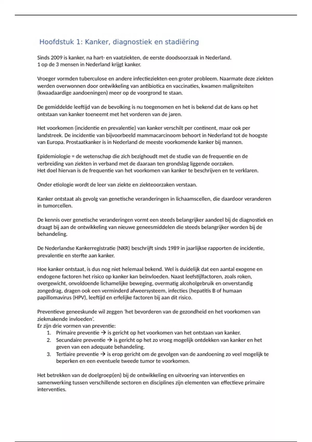 1. Primaire preventie is gericht op het voorkomen van het ontstaan van kanker.