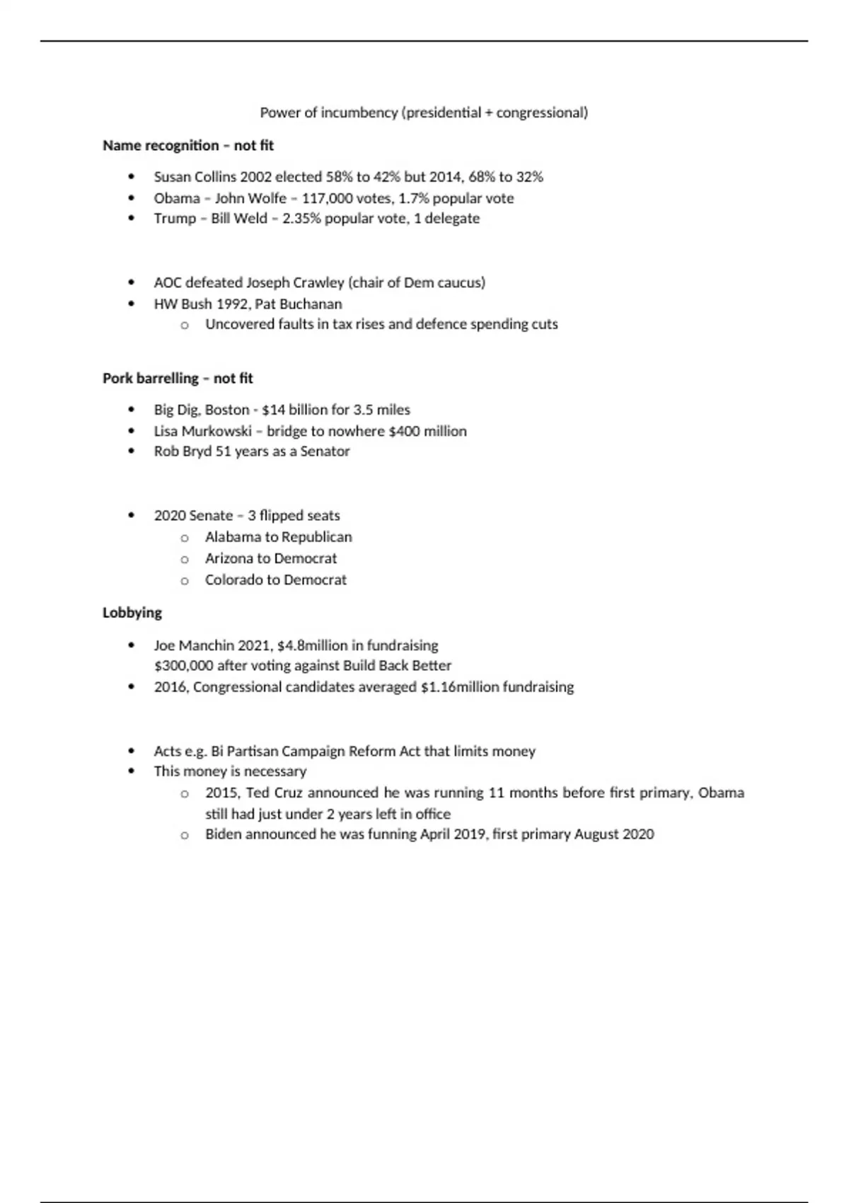 Essay Plan: Evaluate the view that incumbency advantage makes Presidential & Congressional elections not fit for purpose
