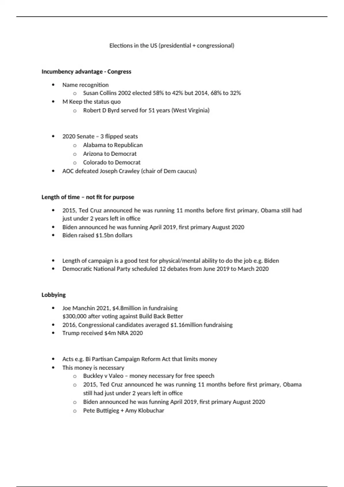o Biden announced he was funning April 2019, first primary August 2020