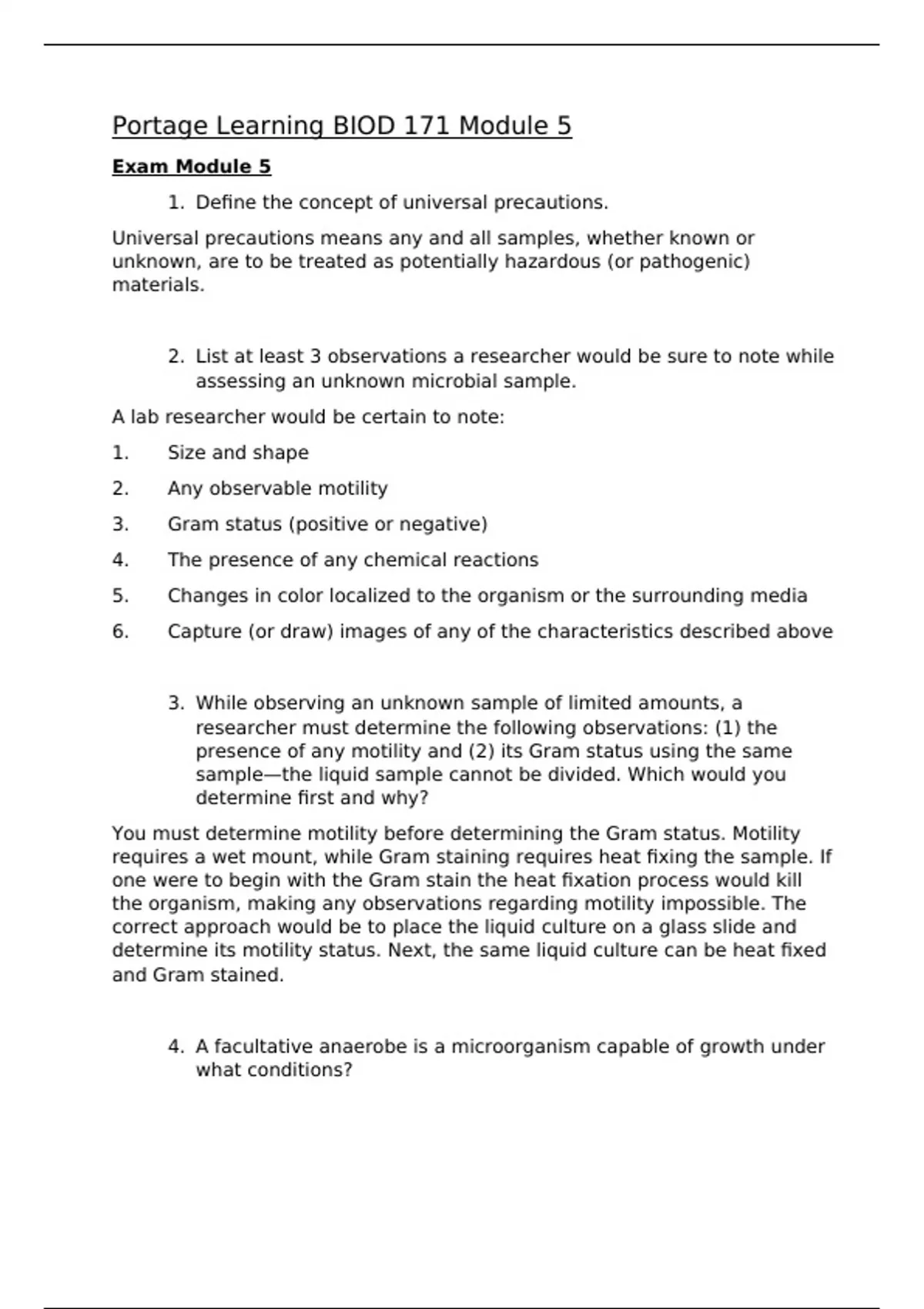 Portage Learning BIOD 171 Module exam Latest Update Graded A+