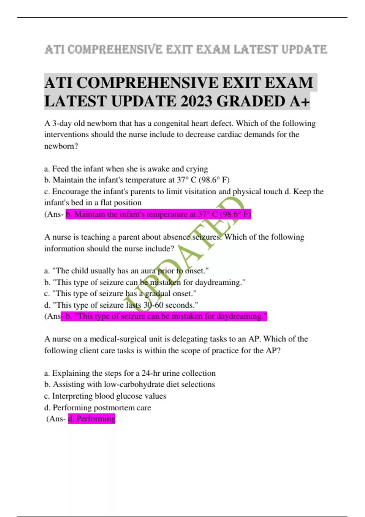 ATI COMPREHENSIVE EXIT EXAM LATEST UPDATE 2023 GRADED A+ ATI COMPREHENSIVE EXIT EXAM LATEST UPDATE 2023 GRADED A+
