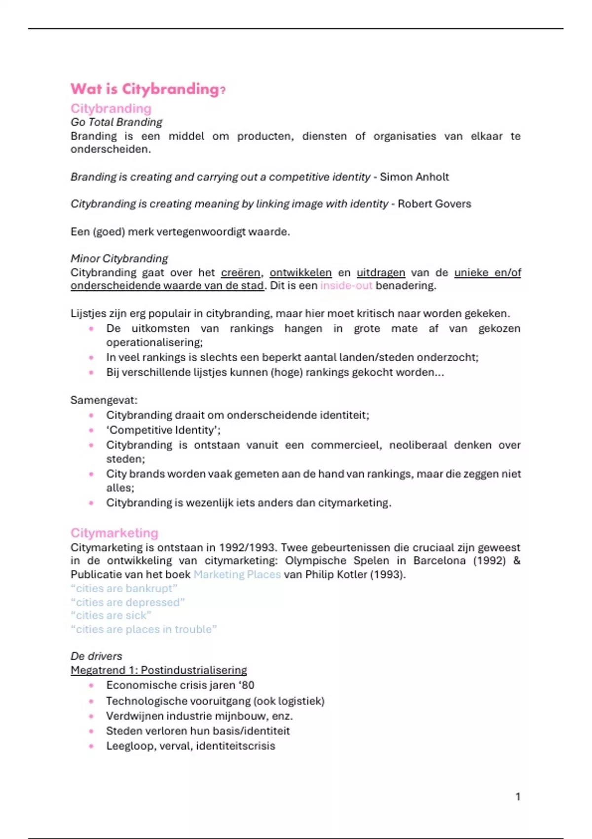 • Citybranding is ontstaan vanuit een commercieel, neoliberaal denken over