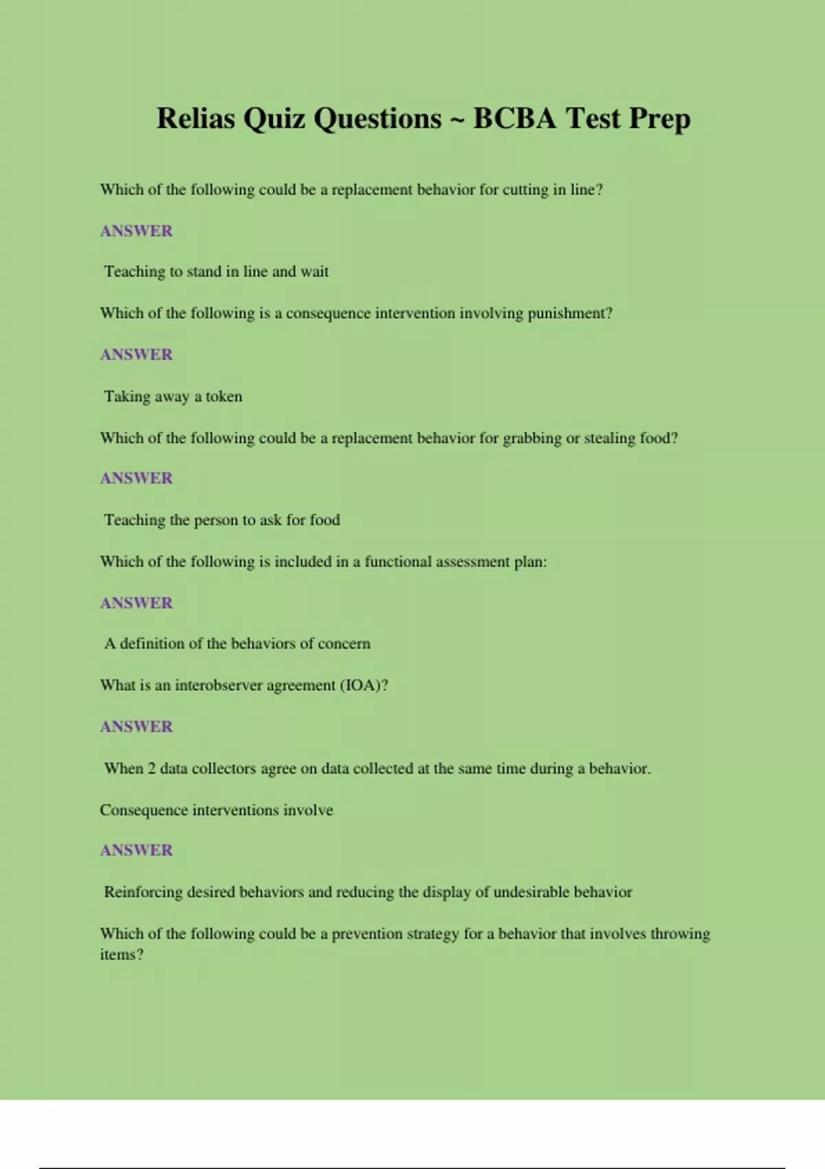 Relias Quiz Questions ~ BCBA Test Prep (Latest 2023/2024) Verified Answers