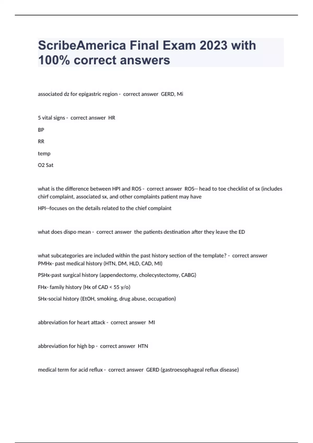 ScribeAmerica Final Exam 2023 with 100% correct answers