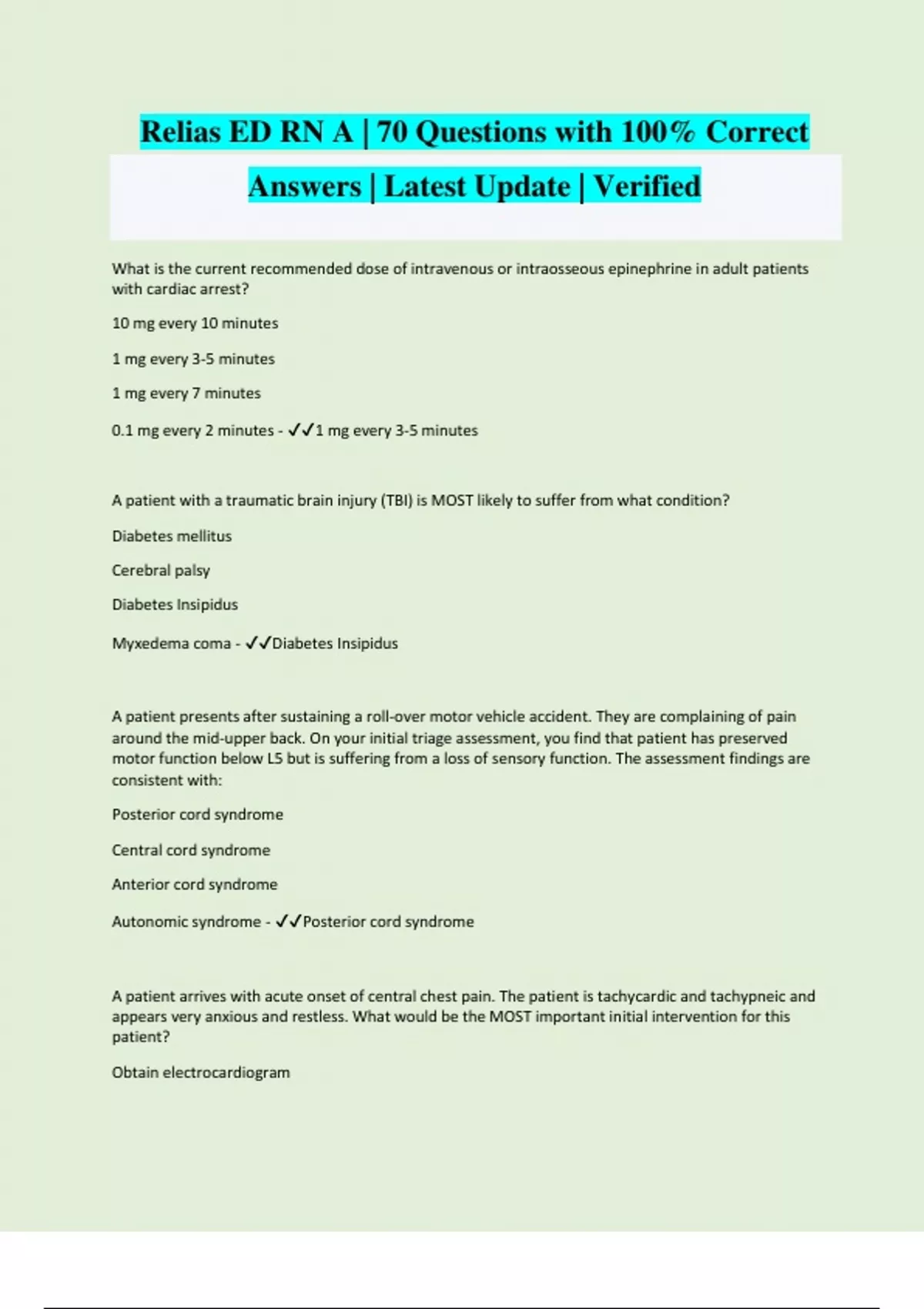 RD Practice Exam | 100 Questions with 100% Correct Answers | Updated & Verified A performance standard which does not have anything to do with a department mission may not be: A. Relevant B.Time-based C. Realistic D. Measurable - A. Relevant A performance standard is: SMART (specific, measurable, achievable, realistic, time-based) The process of one culture adopting the habits of another culture is called: A. Cultural transformation B. Acculturation C. Cross-cultural assimilation D. Cultural mirroring - A. Acculturation Which of the following is NOT true of arbitration? A. It is used to resolve disagreements B.An objective third party is involved C. It is not legally binding D. It is used during negotiations with unions and management - C. It is not legally binding What protein requirement applies to kidney patients undergoing hemodialysis? A. 1.4-1.6 mg/kg body weight B. 0.6-0.8 mg/kg body weight