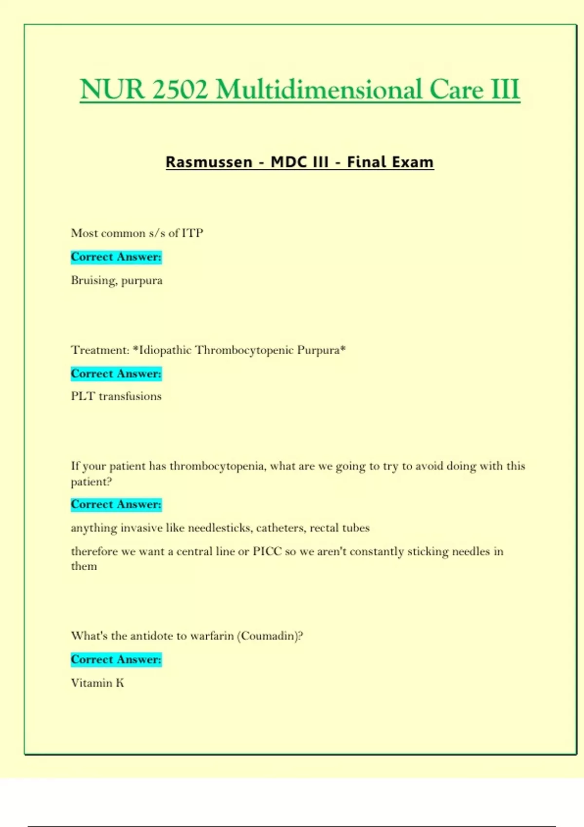 Final Exam: NUR2502 / NUR 2502 (Latest 2024 / 2025 UPDATES STUDY BUNDLE) Multidimensional Care III / MDC 3 Exam Reviews | Questions and Verified Answers | 100% Correct | Grade A - Rasmussen