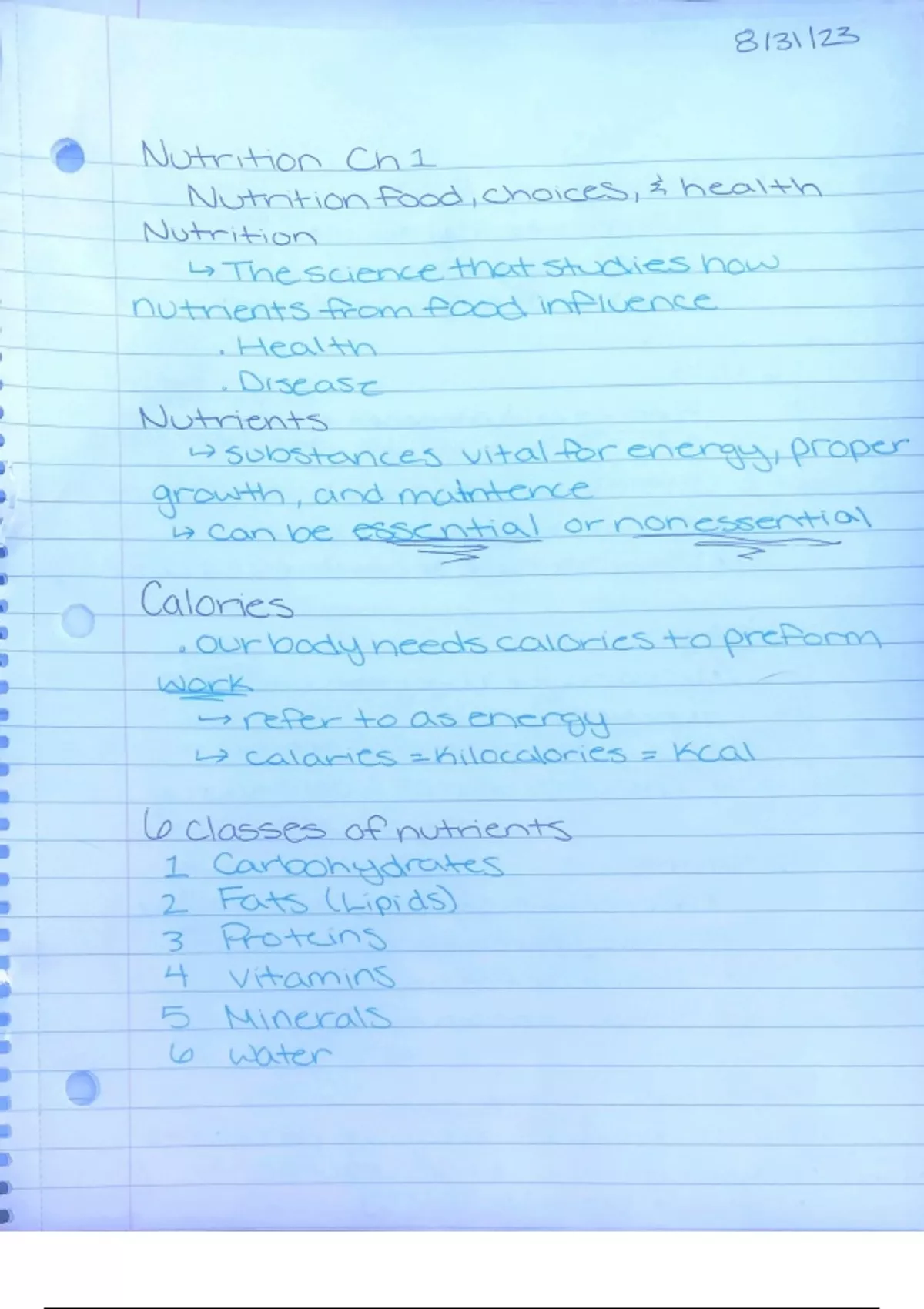 A few starting notes taken in Nutrition 135