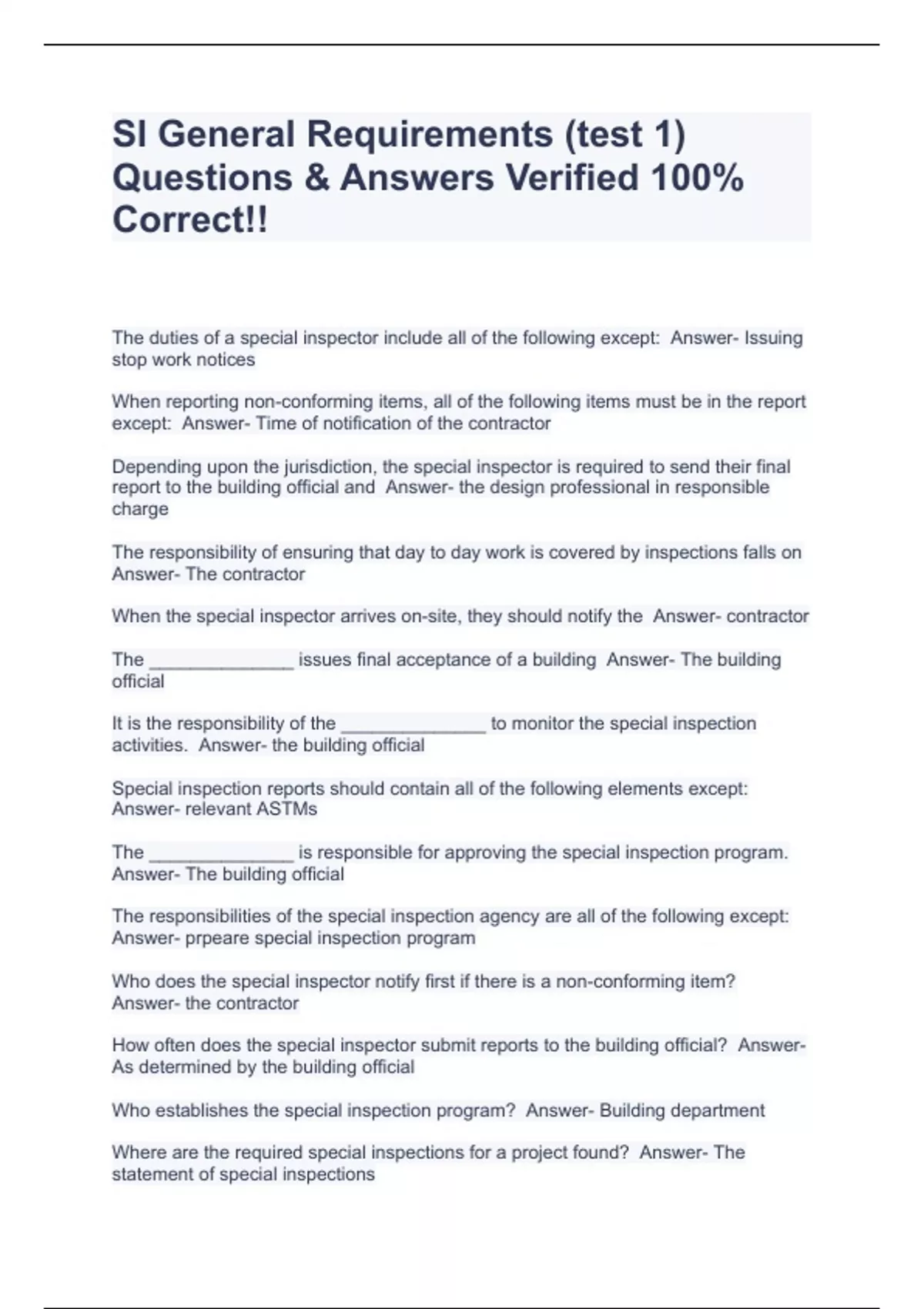 SI General Requirements (test 1) Questions & Answers Verified 100% Correct!!