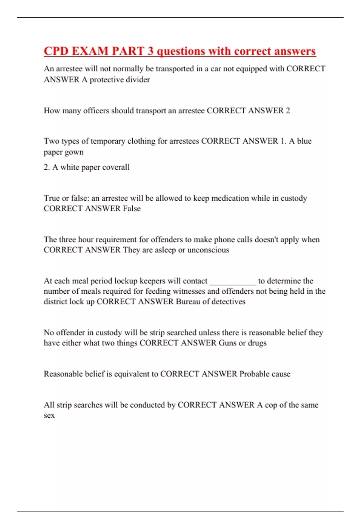 Two types of temporary clothing for arrestees CORRECT ANSWER 1. A blue paper gown 2. A white paper coverall