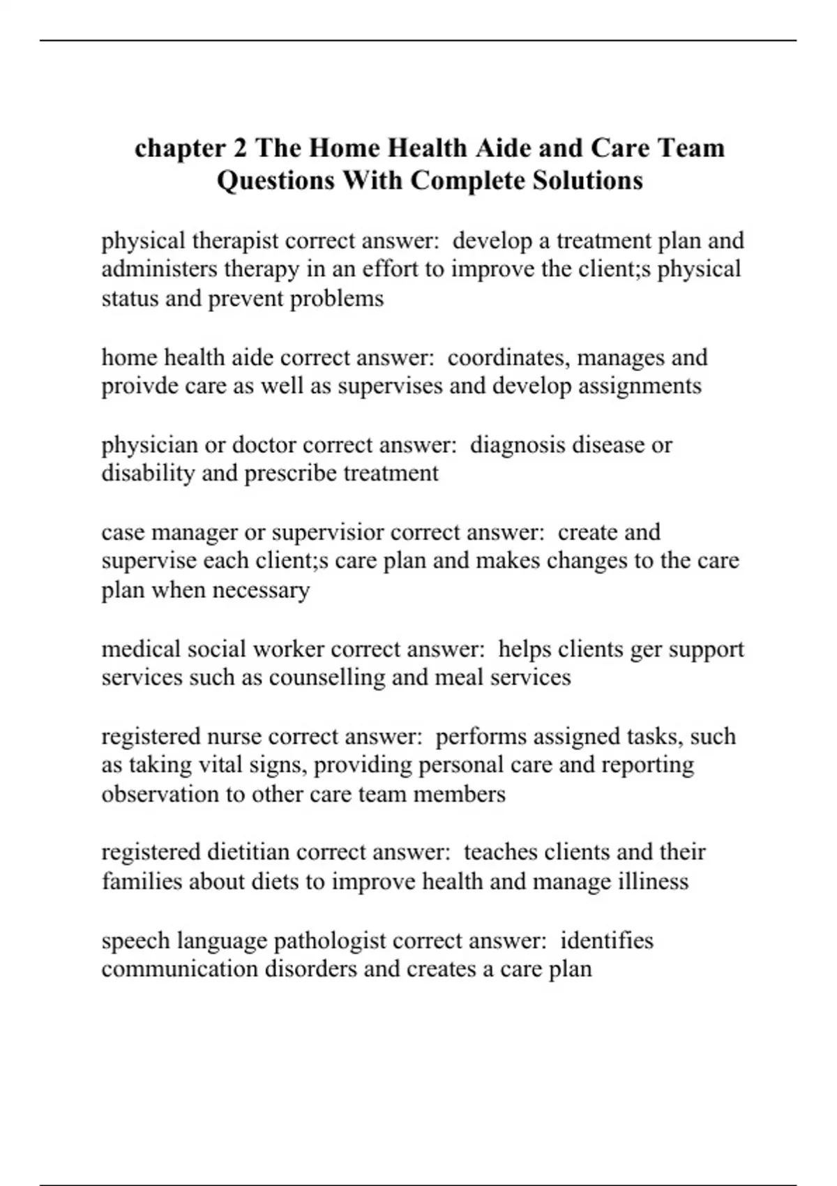 chapter 2 The Home Health Aide and Care Team Questions With Complete Solutions