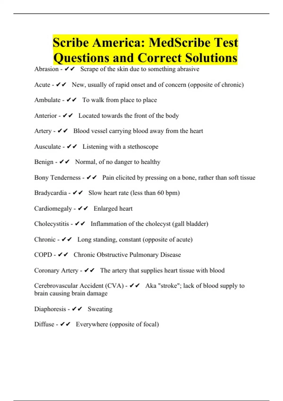 Scribe America: MedScribe Test Questions and Correct Solutions