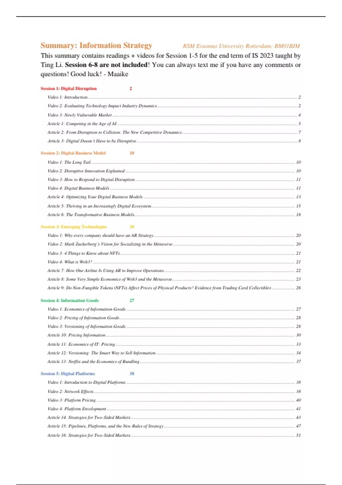 This summary contains readings + videos for Session 1-5 for the end term of IS 2023 taught by