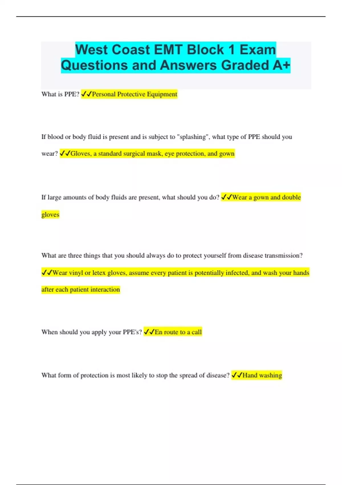West Coast EMT Block 1 Exam Questions and Answers Graded A+