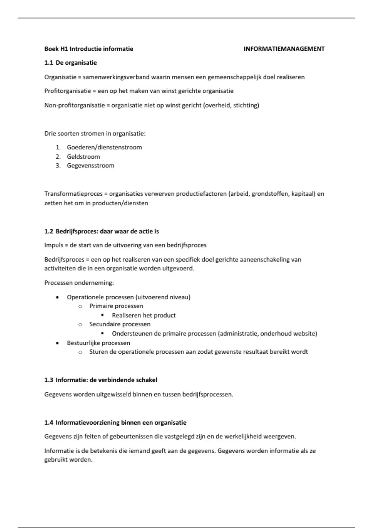 • Managementinformatie = informatie die nodig is voor beslissingen en besturen uitvoerende
