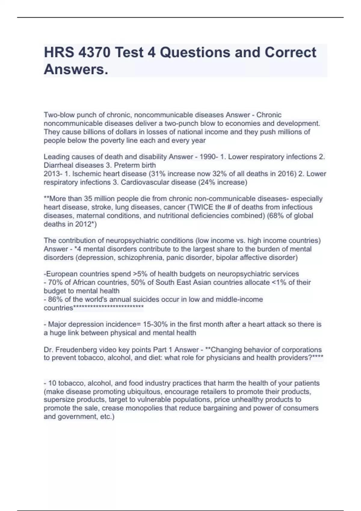 HRS 4370 Test 4 Questions and Correct Answers.