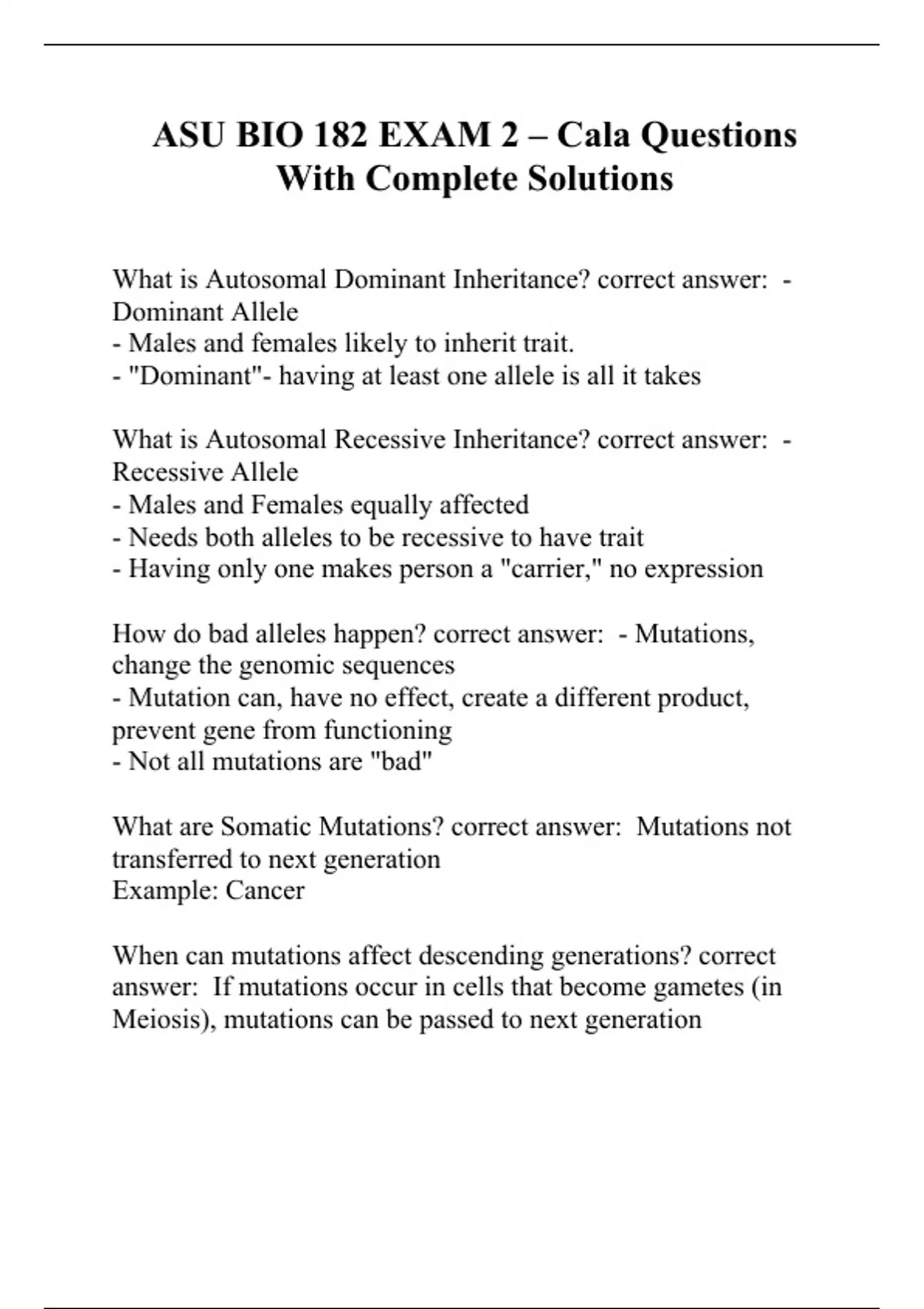 ASU BIO 182 EXAM 2 – Cala Questions With Complete Solutions