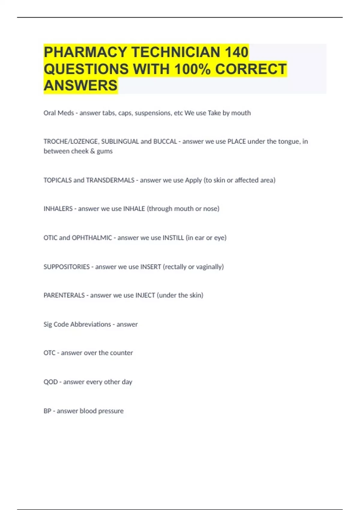 PHARMACY TECHNICIAN |140 QUESTIONS WITH 100% CORRECT ANSWERS|GUARANTEED SUCCESS