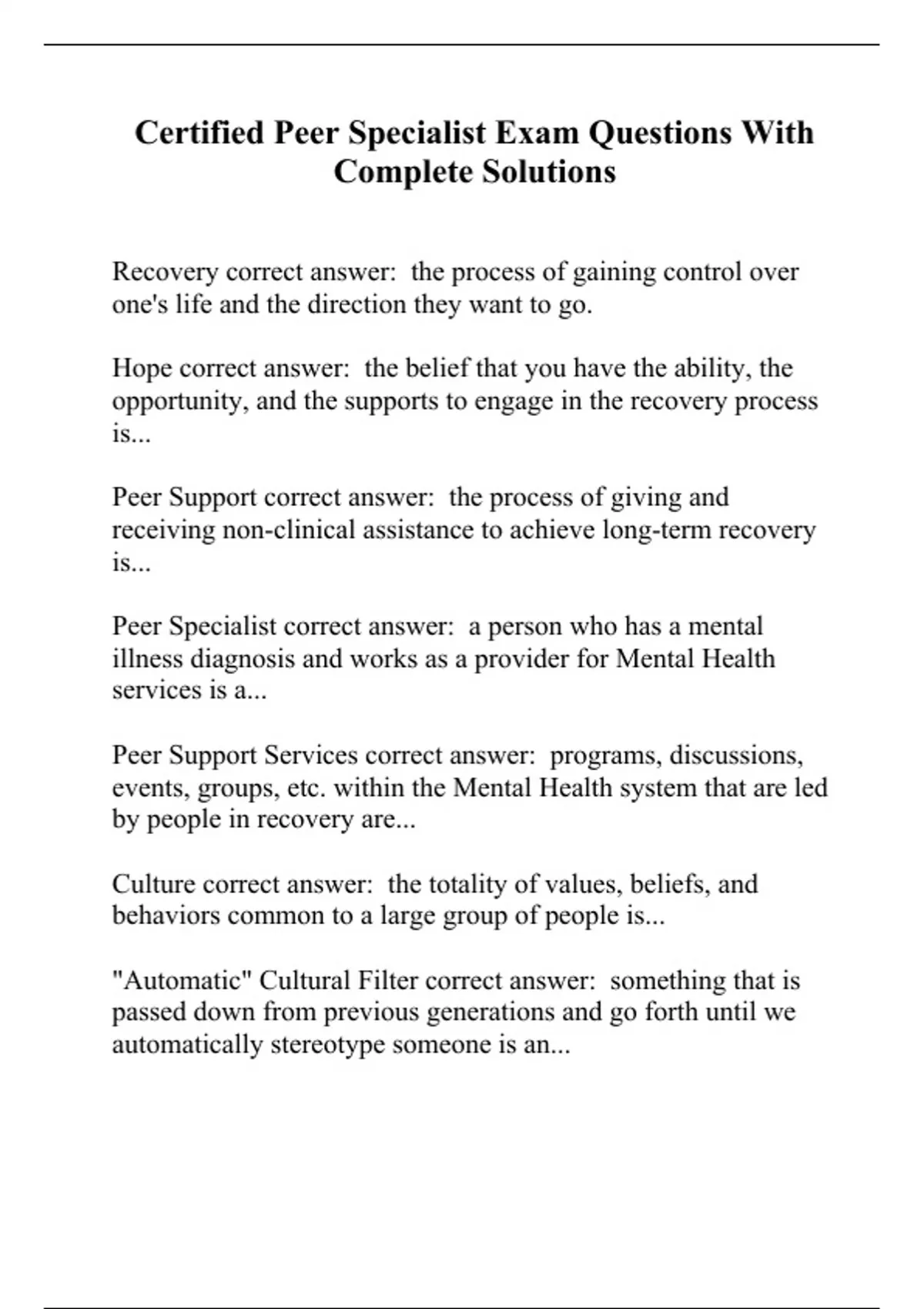 Certified Peer Specialist Exam Questions With Complete Solutions