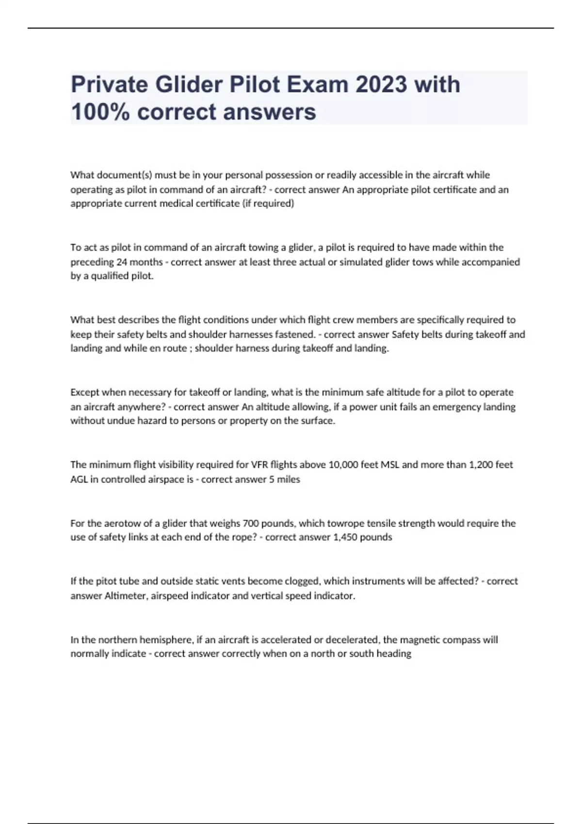 private glider pilot exam 2023 with 100 correct a