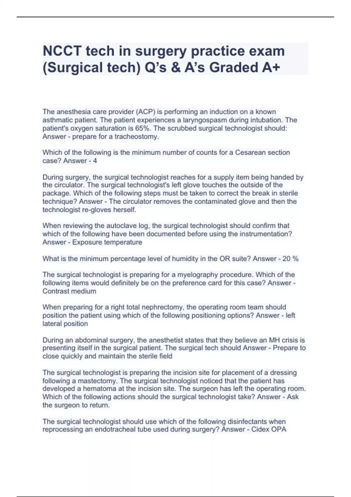 NCCT tech in surgery practice exam (Surgical tech) Q’s & A’s Graded A+