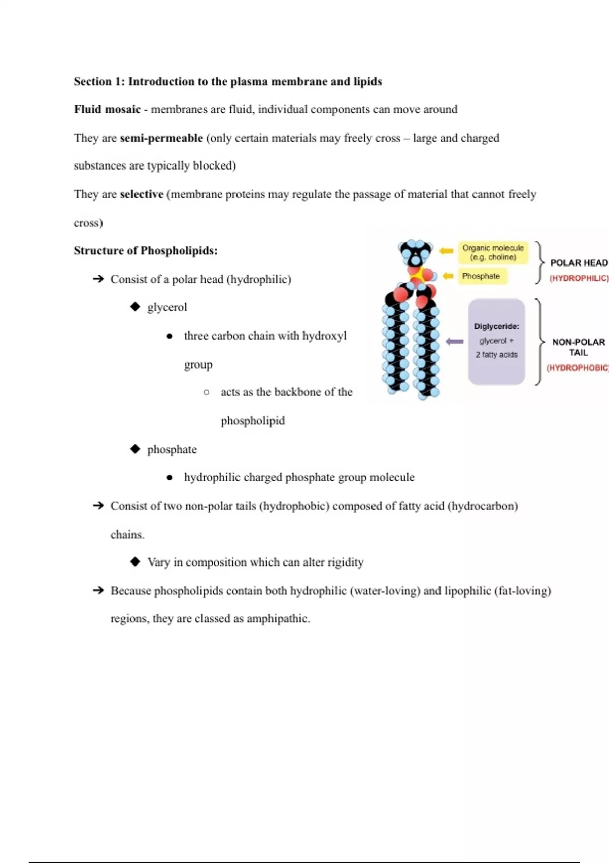 Section 1: Introduction to the plasma membrane and lipids