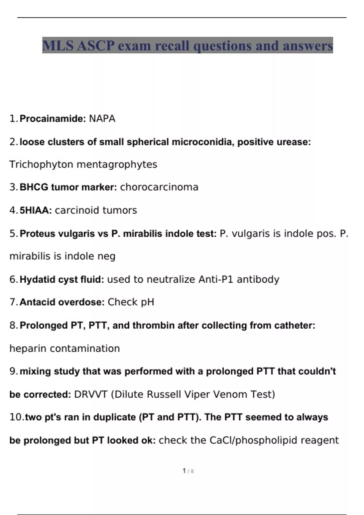 MLS ASCP exam recall questions and answers 2022 micro with complete solution