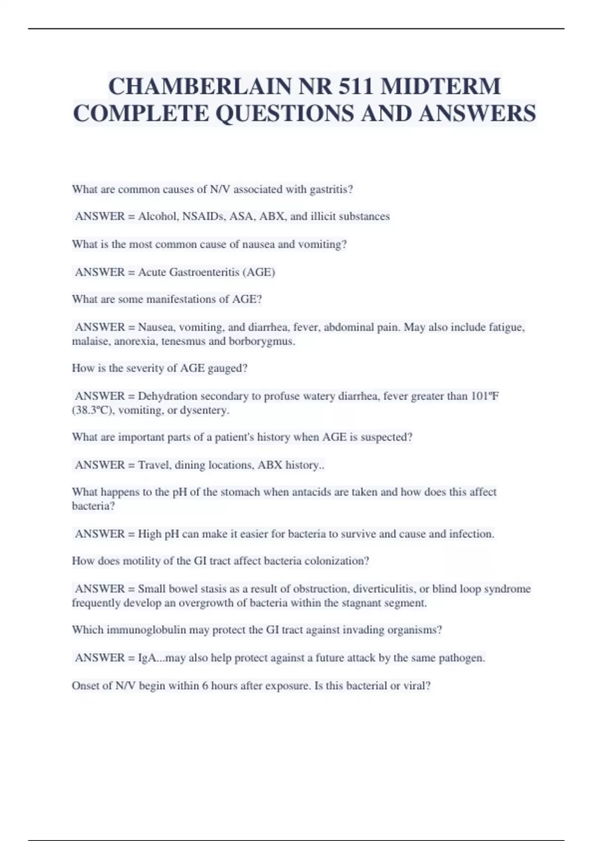 CHAMBERLAIN NR 511 MIDTERM COMPLETE QUESTIONS AND ANSWERS