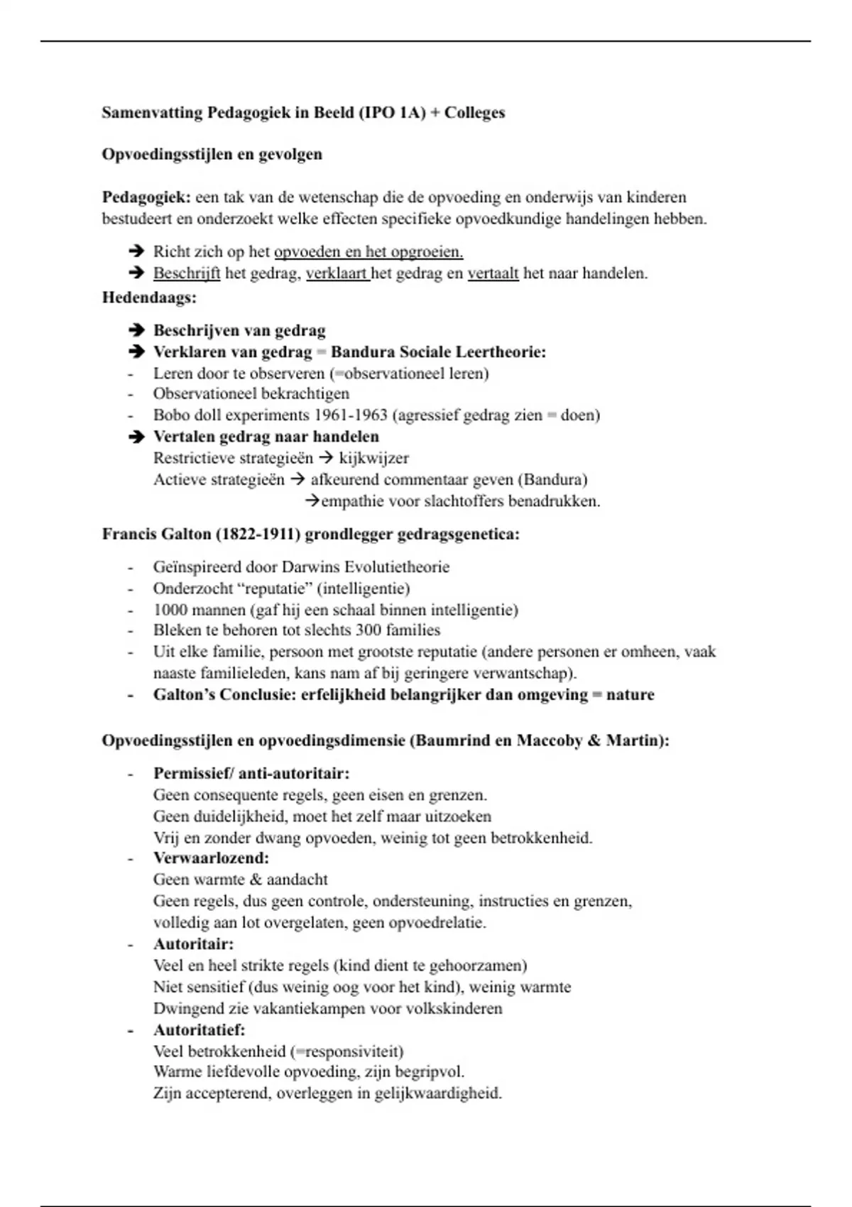 Samenvatting Pedagogiek in Beeld (IPO 1A) + Colleges