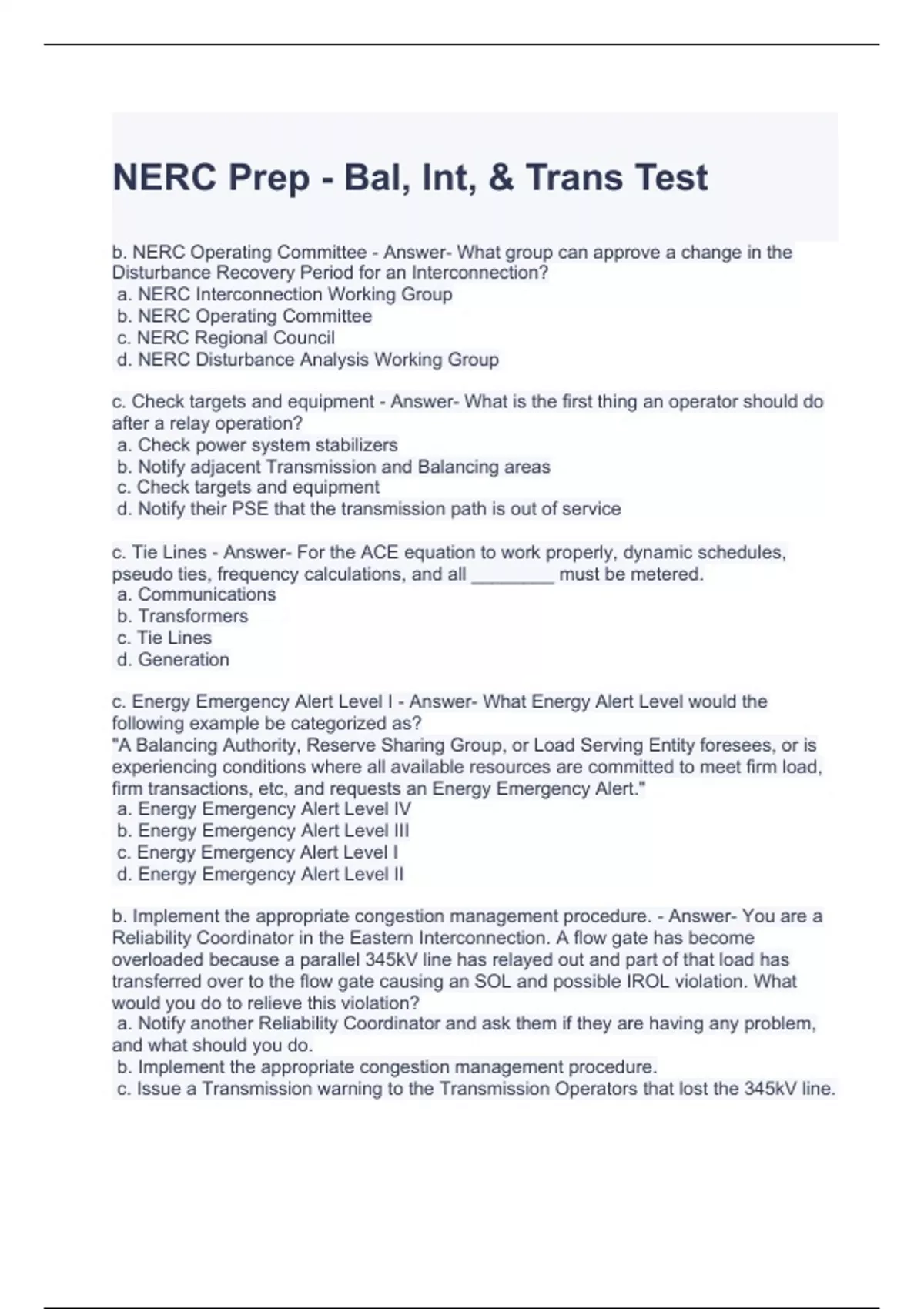 NERC Prep - Bal, Int, & Trans Test 2023-solved