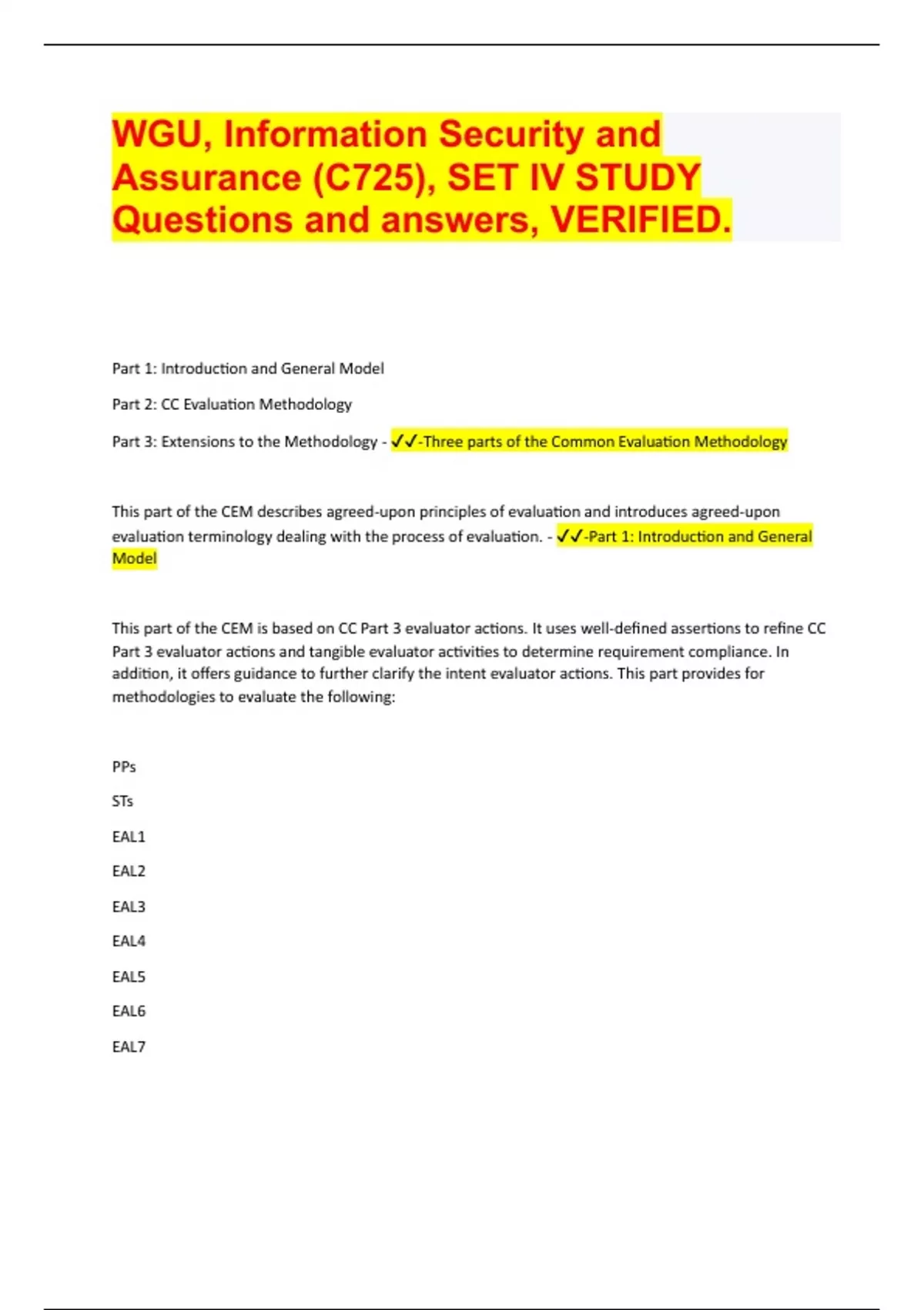 WGU, Information Security and Assurance (C725), SET IV STUDY Questions and answers, VERIFIED 2024