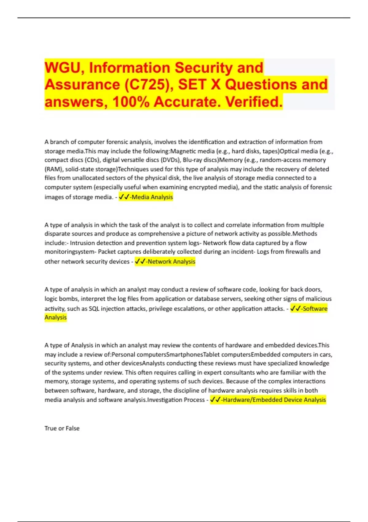 WGU, Information Security and Assurance (C725), SET X Questions and answers, 100% Accurate. Verified 2024