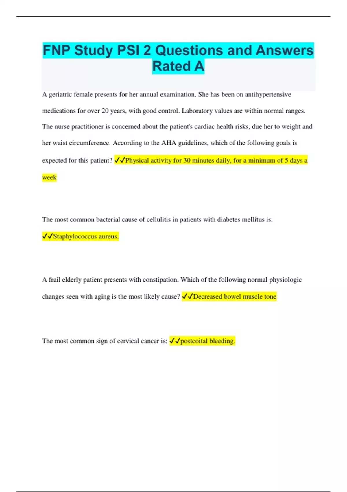 FNP Study PSI 2 Questions and Answers Rated A 23/24