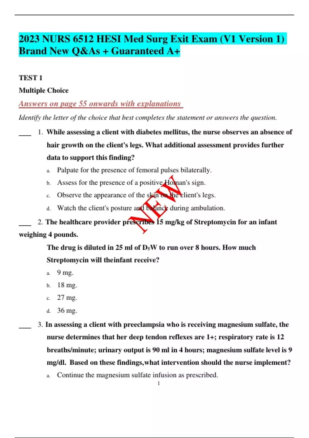 2023 NURS 6512 HESI Med Surg Exit Exam (V1 Version 1) Brand New Q&As + Guaranteed A+ 2023 NURS 6512 HESI Med Surg Exit Exam (V1 Version 1) Brand New Q&As + Guaranteed A+