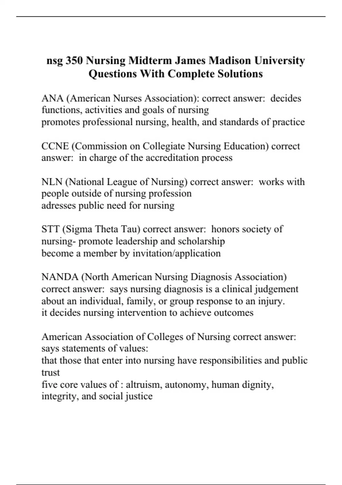 nsg 350 Nursing Midterm James Madison University Questions With Complete Solutions