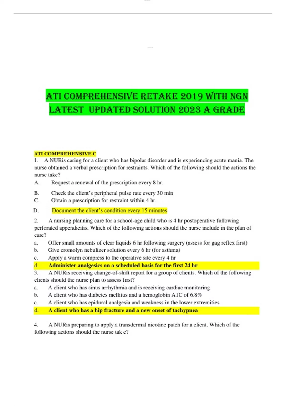 ATI PN COMPREHENSIVE PREDICTOR 2023 RETAKE GUIDE QUESTIONS AND ANSWERS WITH NGN QUESTIONS